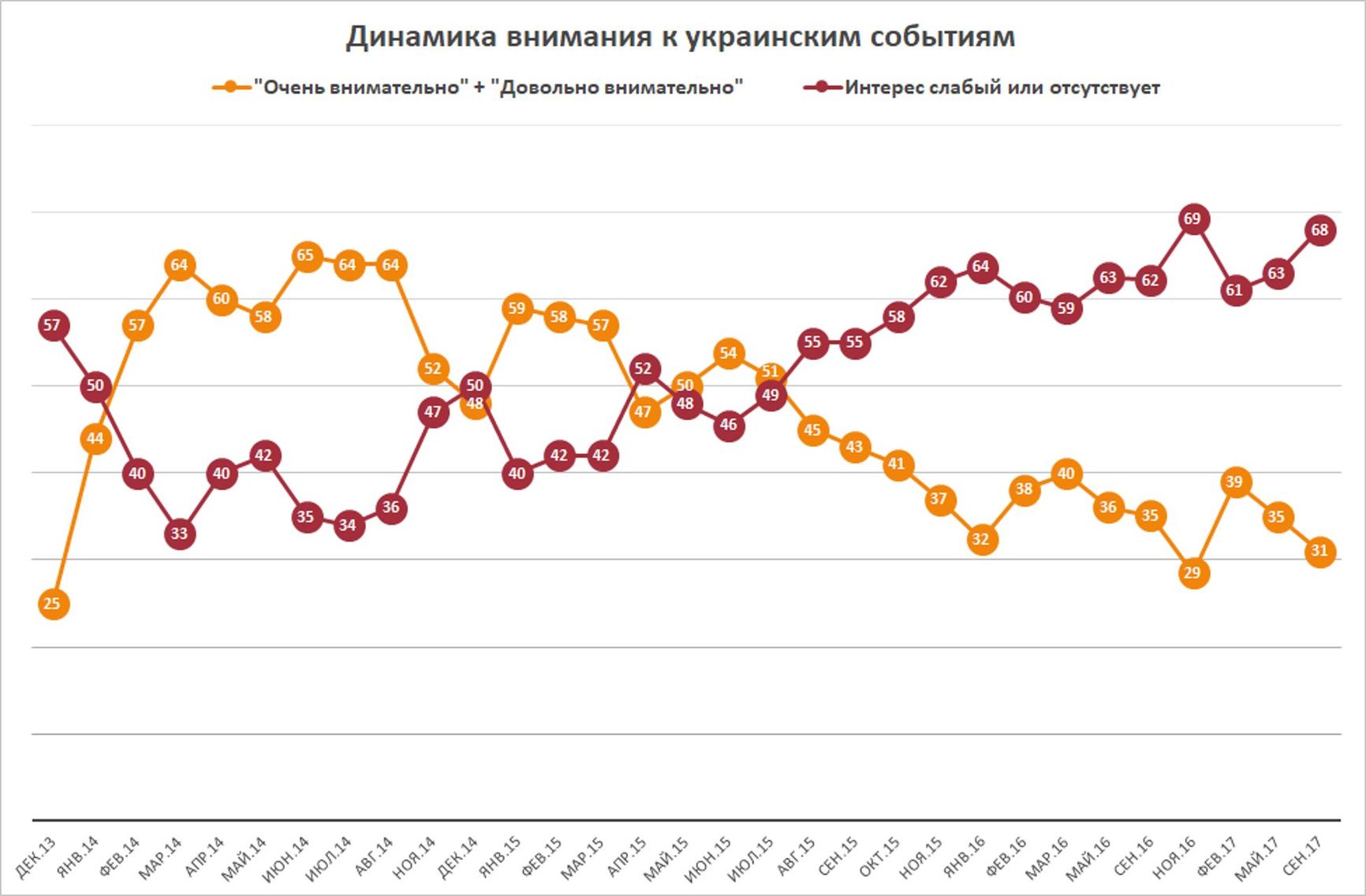It is crucial to understand that very few Russians have their own opinion on matters of foreign policy and questions of “friend or foe” – unlike the issues of justice, corruption, and even more so, matters directly affecting their quality of life, personal safety, prices, education, or healthcare. That said, in the long term, respondents’ opinions on foreign policy matters are the most volatile. They are also the most dependent on centralized propaganda, which wanes and waxes as the Kremlin responds to new geopolitical circumstances.