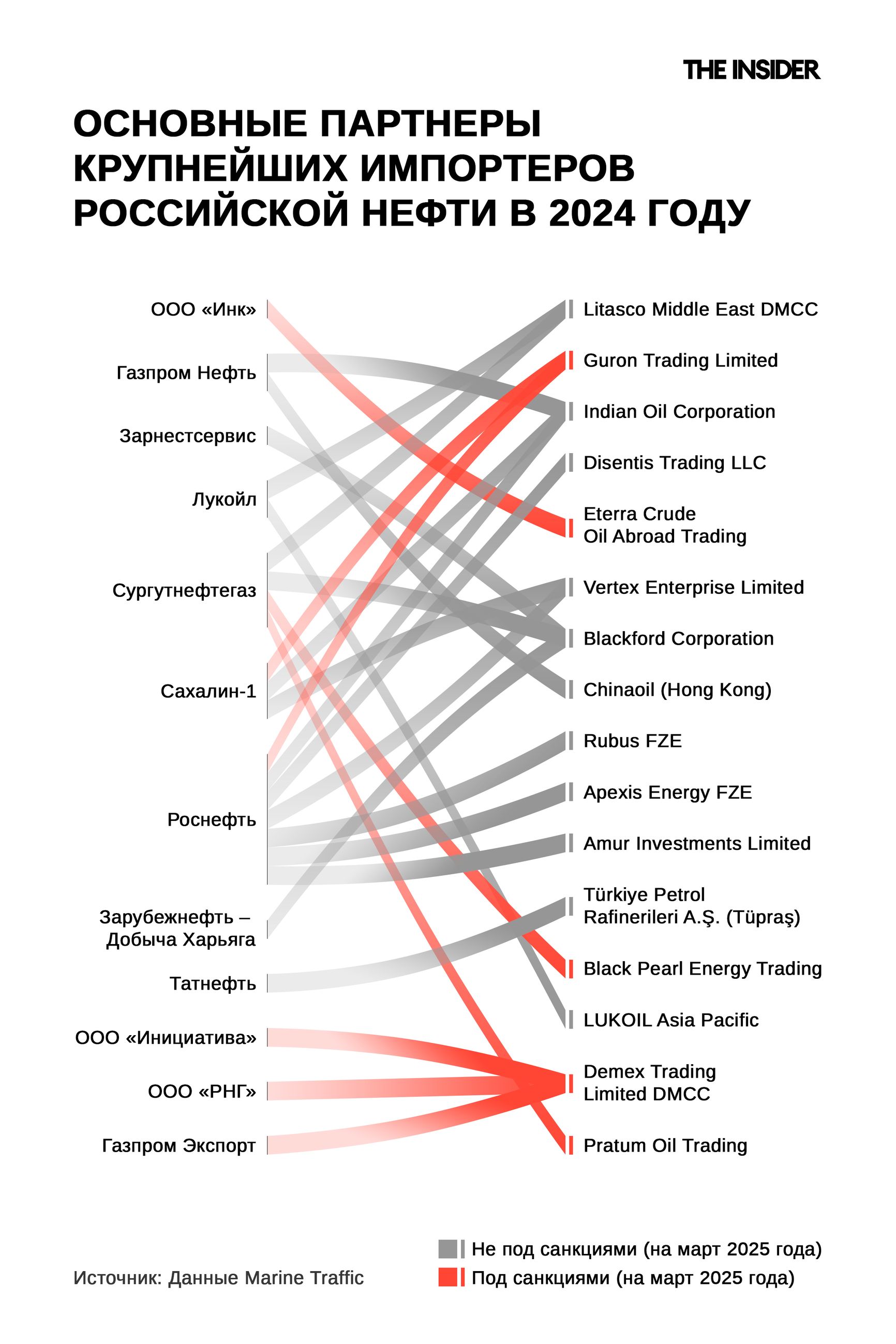 The Insider направил запросы в Chinaoil (Hong Kong) Corporation Limited, Indian Oil Corporation, Turkiye Petrol Rafinerileri, Guron Trading, Pratum Oil Trading. Контактной информации других фирм в публичном доступе нет.
