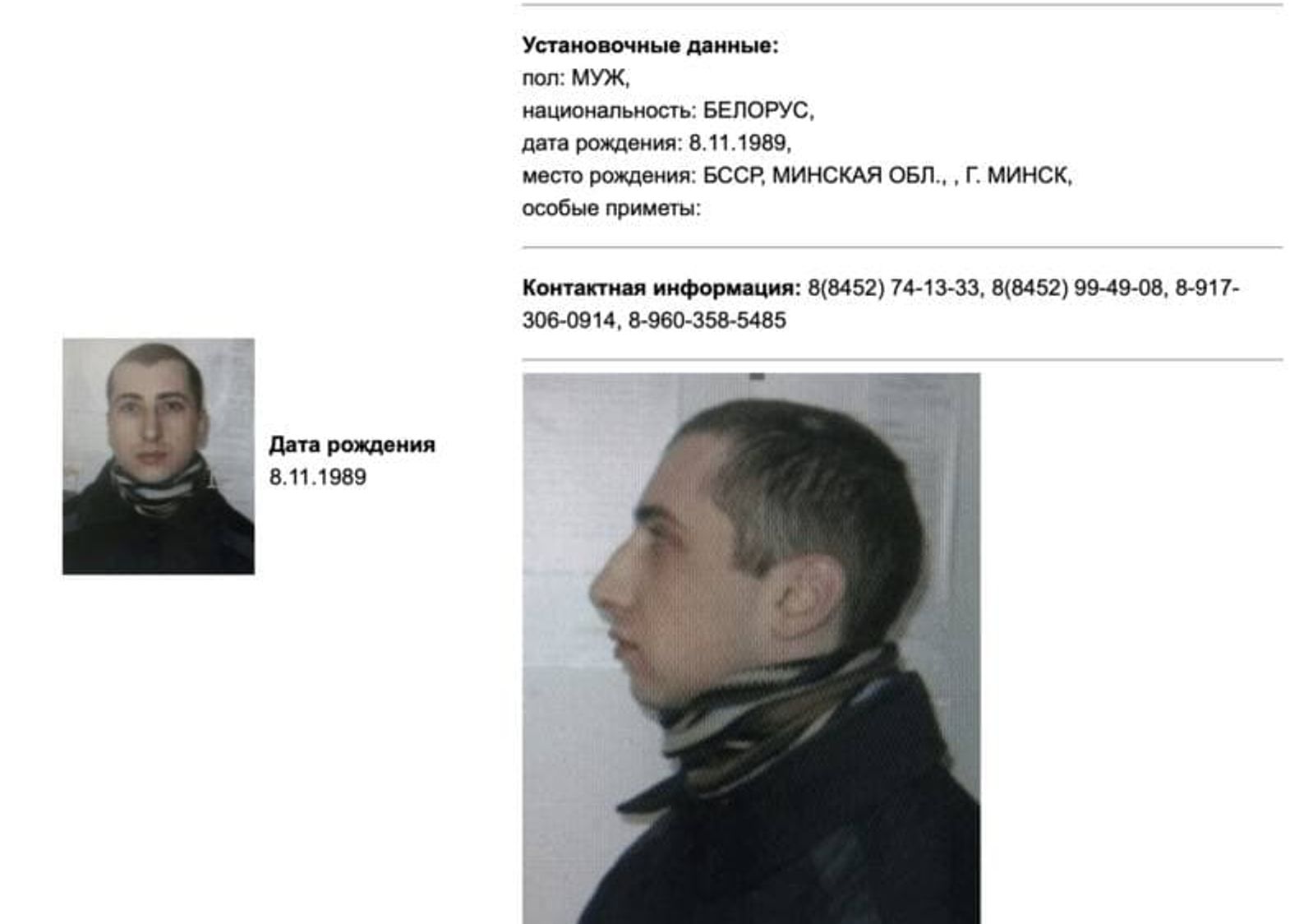 Как указано в карточке в базе розыска МВД России, родившийся в Минске в 1989 году Сергей Савельев «разыскивается по статье УК». В рамках какого именно дела ведется розыск не уточняется.