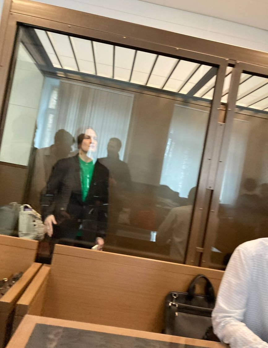 Тышкевич привели в зал заседания в Дорогомиловском районном суде в наручниках и посадили в «аквариум», потому что она осуждена на 15 суток за пост с украинским трезубцем от 2017 года в Instagram. После протеста защитников Тышкевич вывели из «аквариума». Журналистов в зал не пустили.