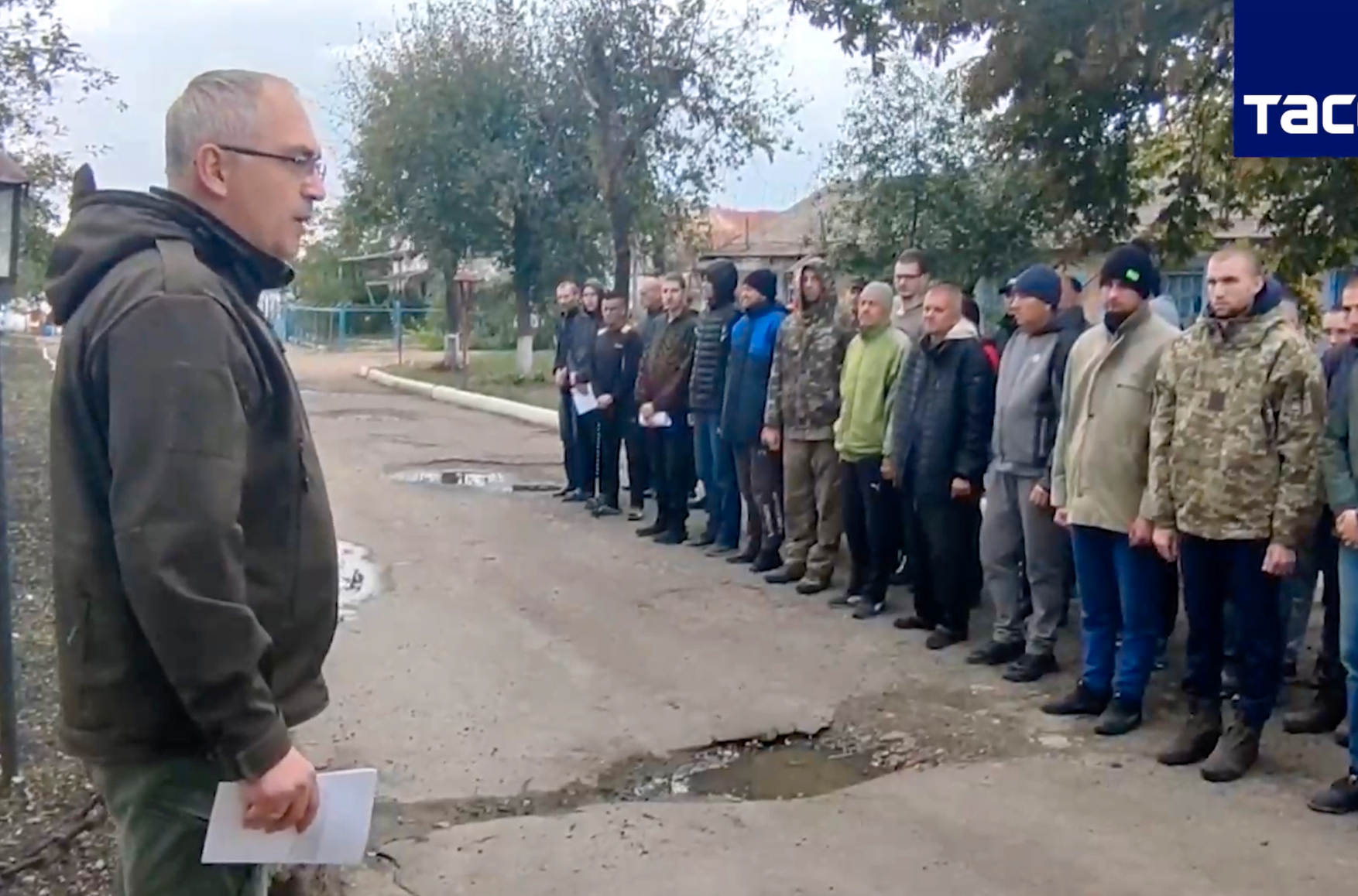 Украинских военнопленных в колонии в Еленовке заставили голосовать за присоединение «ЛДНР» к России. Видео с построением и голосованием опубликовало российское государственное информагентство ТАСС.