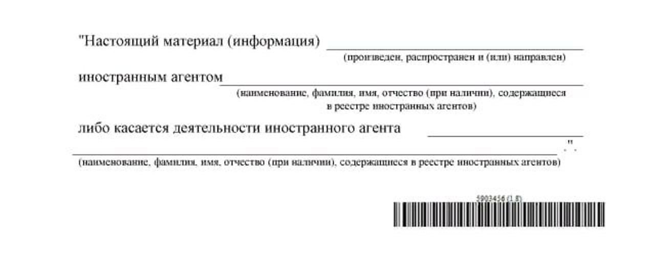 В видео плашку обязательно нужно расположить по центру, чтобы она заняла не менее 20% от размера экрана. Продолжительность демонстрации текстового указания в видео должна составлять не менее 15 секунд. В аудиоматериале текст указания следует озвучить, причем его громкость должна быть не ниже громкости материала. Ускорять произношение сообщения об «иноагентах» в звуковых и видеофайлах запрещено.