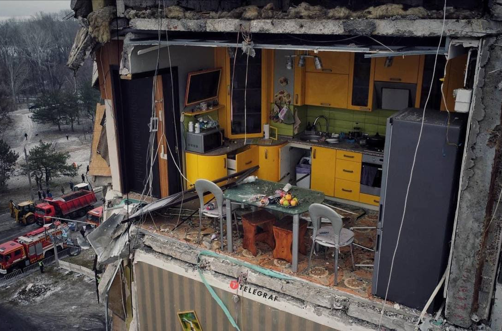 Замглавы офиса украинского президента Кирилл Тимошенко сообщил, что весь дом остался без электричества и газа, а также лишился окон. «Фактически нужно обеспечить жильем больше тысячи человек», — написал чиновник.