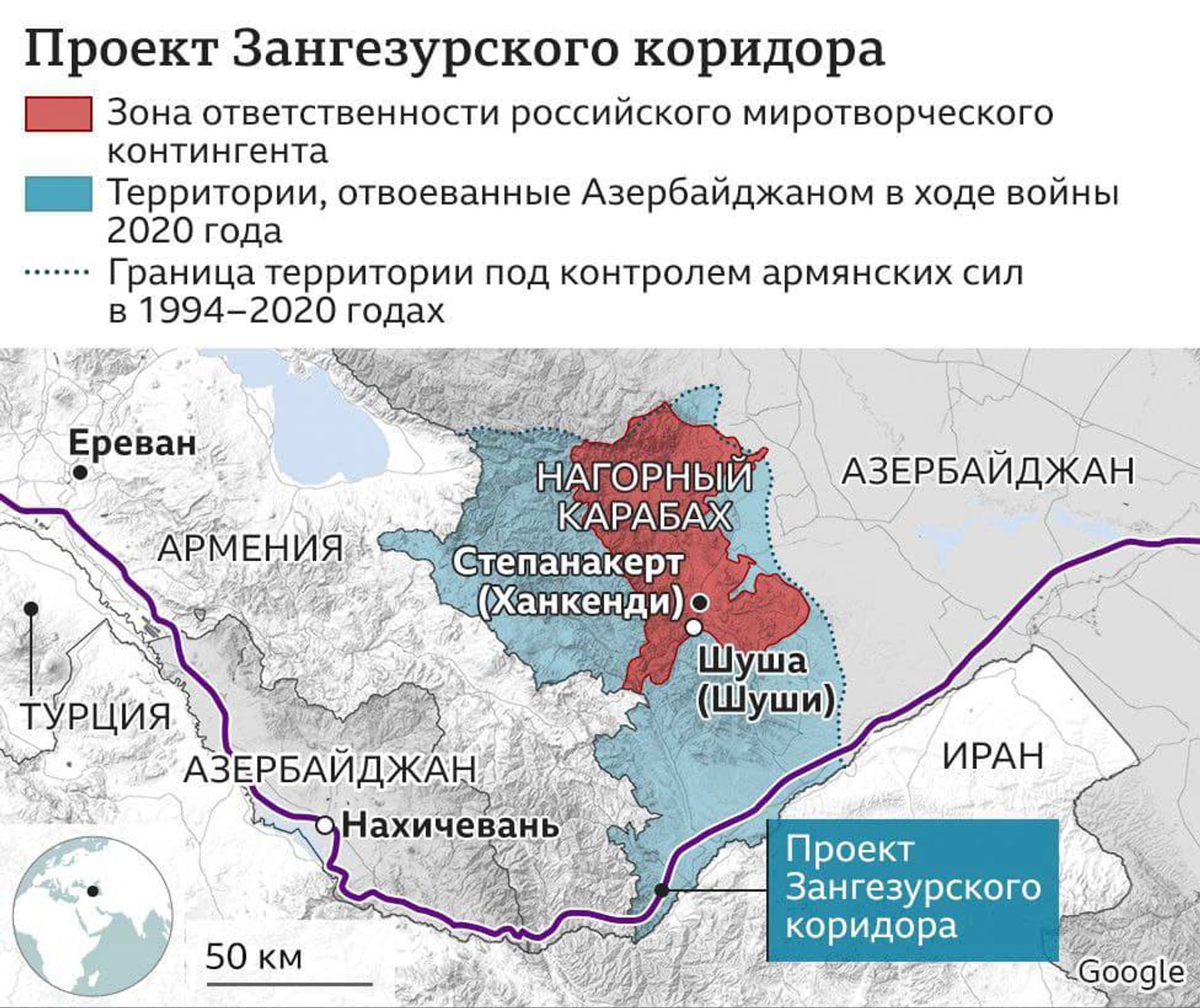 В открытии этого транспортного и торгового коридора заинтересована и Россия, о чем она неоднократно заявляла. Но, учитывая экстерриториальность этого маршрута, то есть отсутствие контроля Армении над ним, фактически он отрежет ее от Ирана, поскольку проходит ровно вдоль армяно-иранской границы. При этом Армения и Азербайджан до сих пор не подписали соглашение о мире и взаимном признании границ. Официальный Баку неоднократно заявлял, что не будет этого делать, пока армянские власти не пересмотрят конституцию страны, в которой содержится ссылка на Декларацию независимости 1990 года, где упоминается «воссоединение Армянской ССР с Нагорным Карабахом».