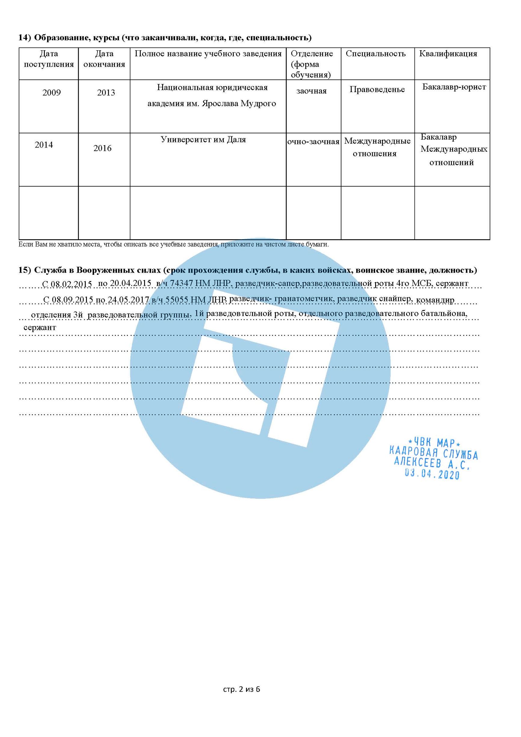 Решение передать набор на аутсорсинг «Шаману» быстро принесло свои плоды. К концу мая фальшивая ЧВК получила десятки новых заявок, все они ссылались на «Шамана» как на своего референта. Бланки заявлений были составлены так, чтобы это выглядело как формы, ранее использовавшиеся настоящей ЧВК «МАР», и на каждой форме была проставлена печать этой ЧВК с указанным именем «директора по персоналу Алексеева». Формы, которые в конечном итоге были заполнены более чем 200 заявителями, содержали полные личные данные, включая текущий адрес, номера телефонов и электронную почту, рост, вес и размеры обуви, образование и военный опыт. The Insider и Bellingcat ознакомились с этими анкетами.